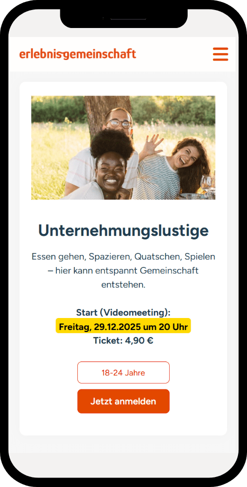 Bei Unternehmungen kannst du als Single Gemeinschaft genießen und entspannt Leute kennenlernen. Größe: 6-10 Personen.